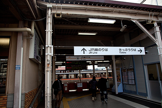 1階の待合室から切符売り場方向を撮りました。看板の下には「自動券売機」の案内がありますが、既に撤去されていました。